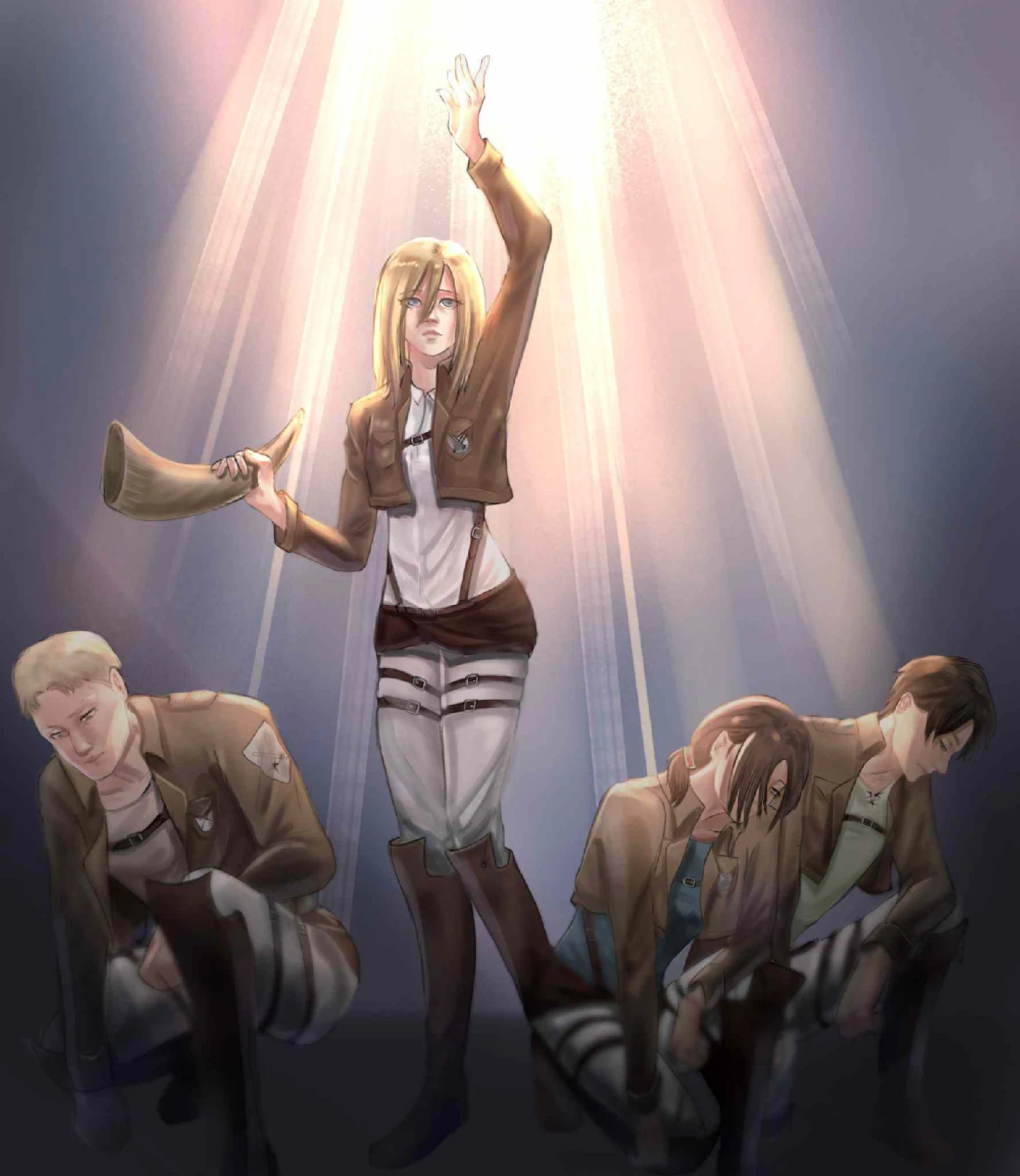 • Annie hampir saja terkena banyak Thunder spear, Reiner menggunakan tubuhnya untuk menyelamatkannya